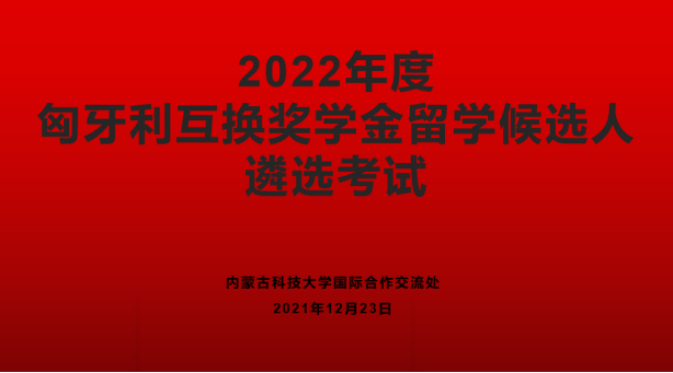 12月23日,我处组织2022年度匈牙利互换奖学金留学候选人遴选考试。考试分为英语基础能力测试和解决实际问题能力面试两个部分,通过考查申请人的英语语言能力、表达能力、社会责任感、心理承受能力等,综合评价申请人的适应能力、运用知识分析和解决理论问题和现实问题的能力。