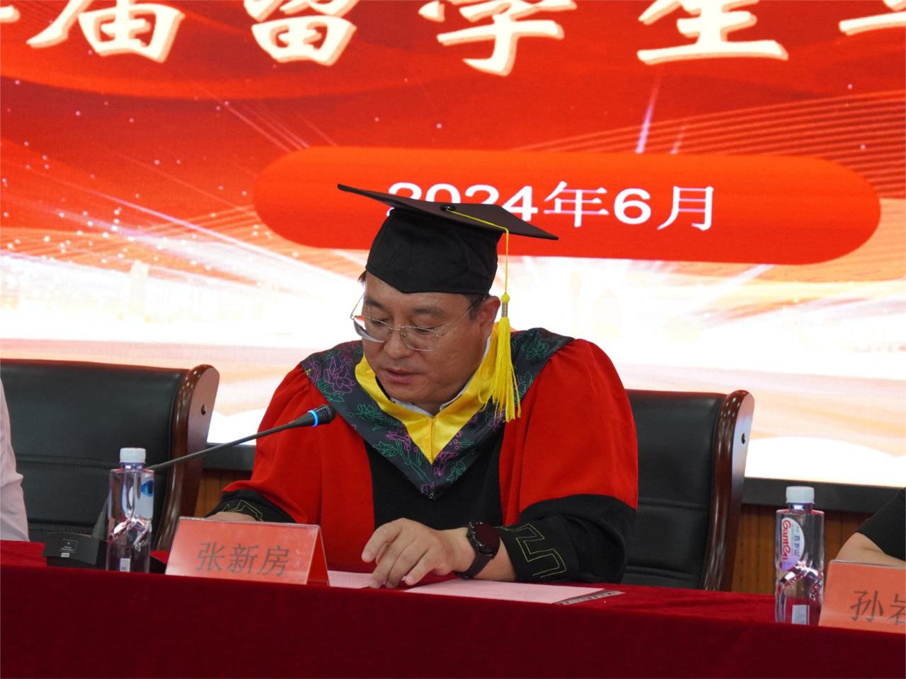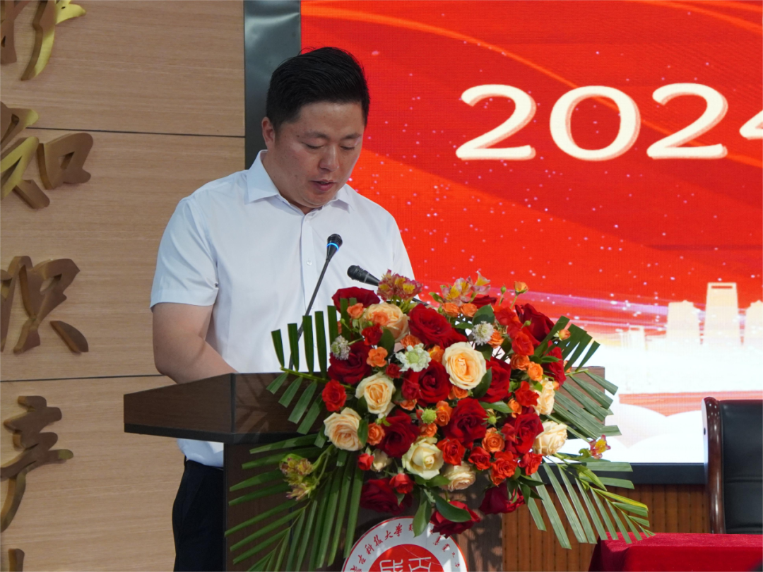 首先,张新房副董事长致辞,他代表公司向即将毕业的职工同学们表示热烈的祝贺,并对他们在学业上的努力和取得的成就给予充分肯定。他提到,来华职工在校期间不仅学到了专业知识,体验了中国文化和国情教育实践活动,也培养了跨文化交流能力和国际视野,这些都将成为他们人生中最主贵的财富。他鼓励,毕业职工们在未来的人生道路上,继续保持求知的热情,不断追求卓越,为促进两国之间的文化交流贡献自己的力量。