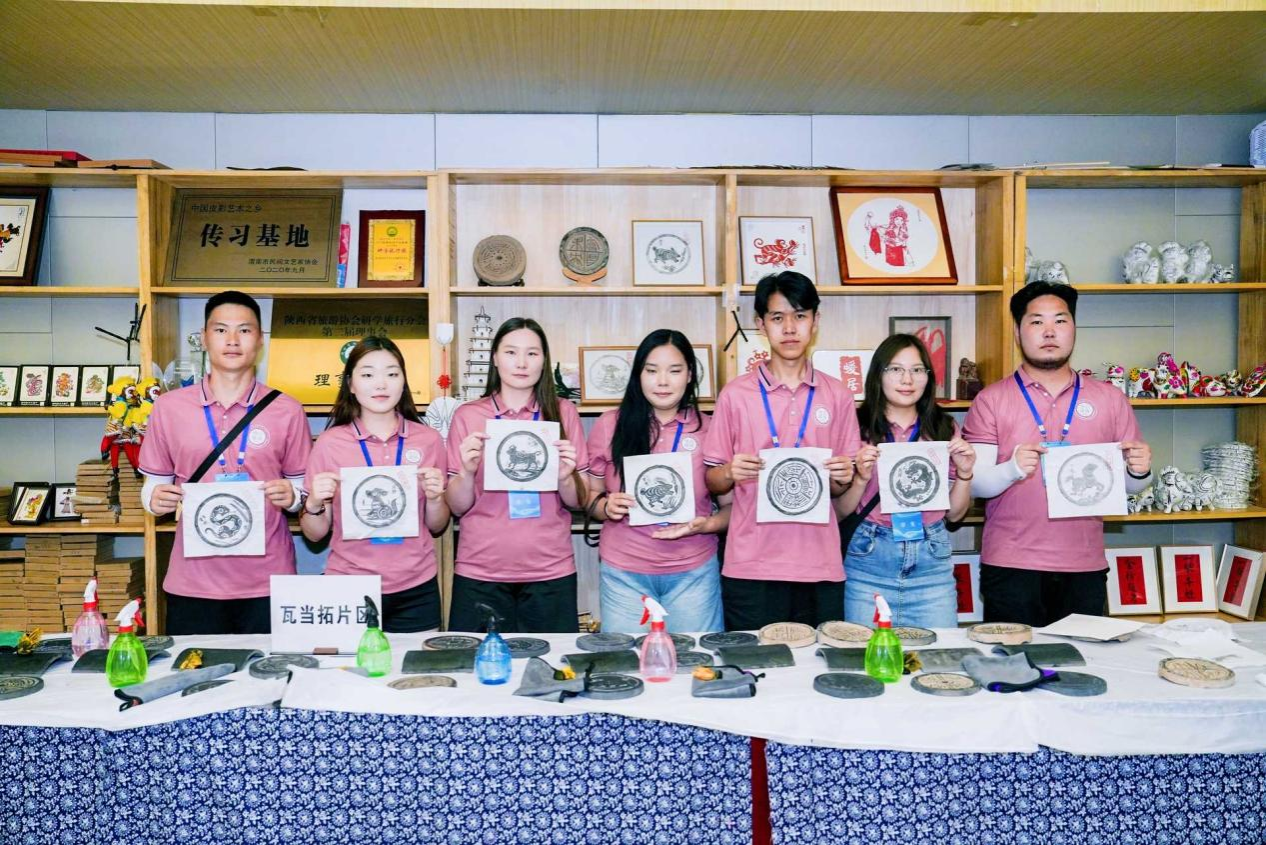 在易俗社文化街区,同学们参与了瓦当拓印和皮影制作体验课。在老师的指导下,他们小心操作,感受传统技艺的独特魅力,看着自己拓印出的瓦当图案,满是成就感。随后学习并观看了皮影制作与操控,灵动的皮影在幕布后演绎故事,独特唱腔与奇妙表演形式,让大家沉醉,纷纷围拢了解皮影雕刻、操纵技巧,近距离触摸非遗传承。