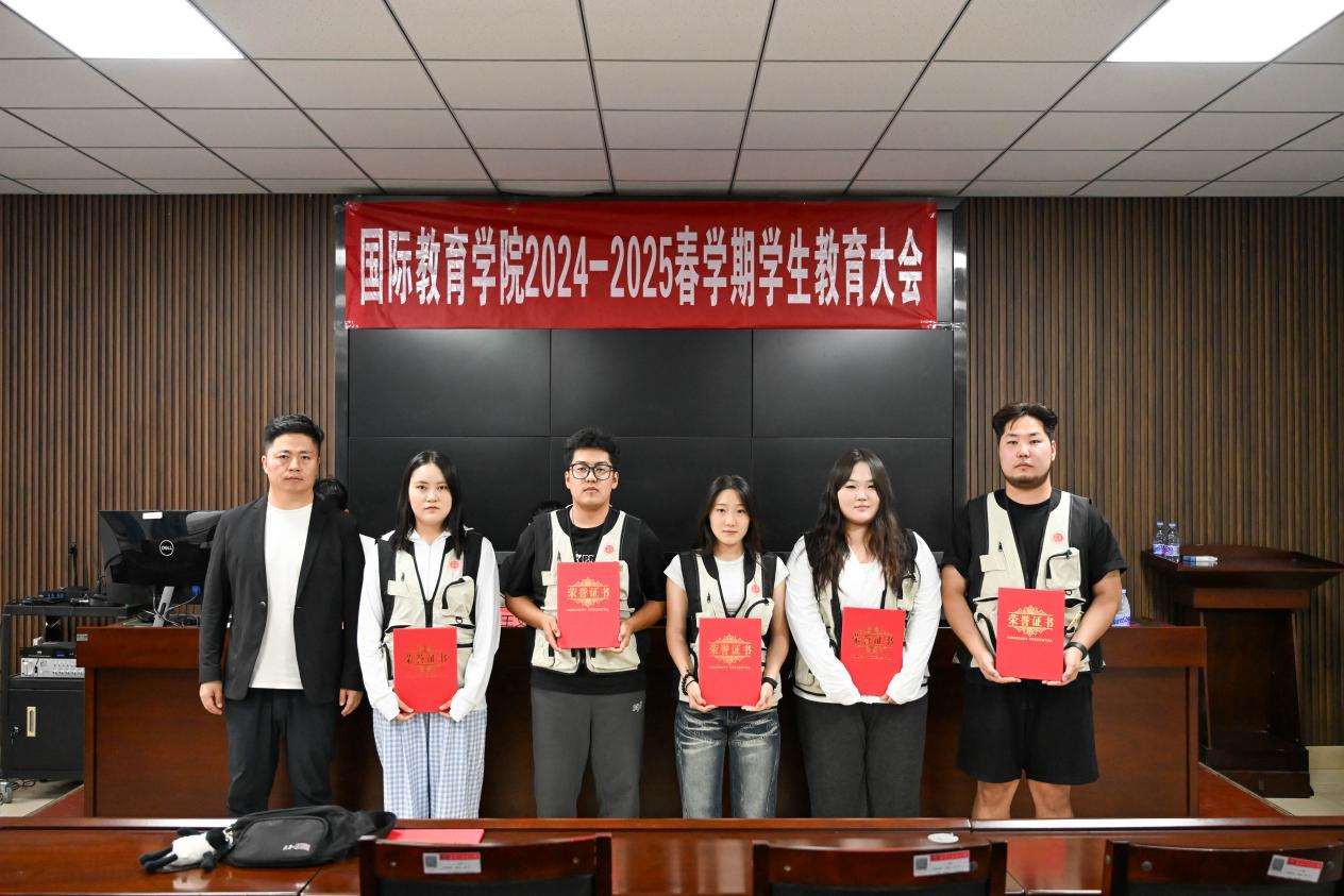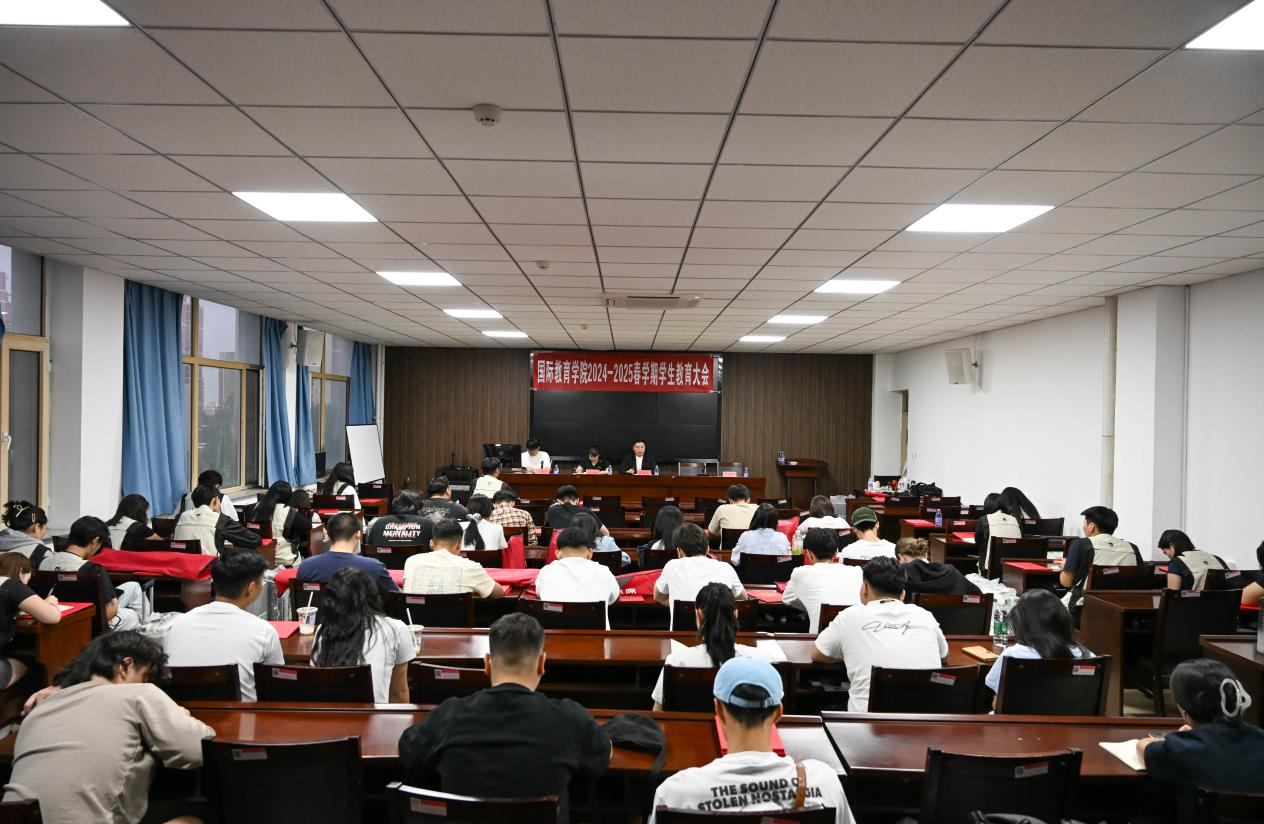 6月27日晚19时,公司在腾飞楼A413召开2024-2025春学期期末员工教育大会。公司领导、相关科室负责人及班主任老师、来华职工和员工会全体成员参加了此次会议,会议就毕业生离校、课程选修、教材预定等事宜进行了通告,就食品卫生安全、重点员工工作和期末放假事宜等工作进行了部署。