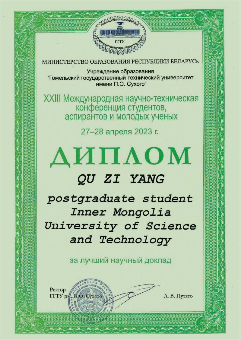 公司12名研究生参加白俄罗斯戈梅利国立技术大学第23届青年科学家、研究生、员工国际科技会议