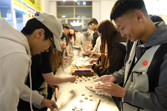 活动中,大家一起擀皮、和馅、包饺子,制作并享受美食,共同分享喜悦。一份薄薄的面皮,一份精致的馅料,经过同学们心灵手巧的加工,便成了一个个灵光闪现的小饺子。饺子不仅是作为一种传统美食,更是作为一种美好的文化情感,被寄托了美好的祝愿,将我们紧紧地联系在了一起。职工同学们通过亲手制作中国传统美食,加深了对中国文化的了解与喜爱,同时也更加深切地感受到来自必一运动大家庭的关心和关爱。