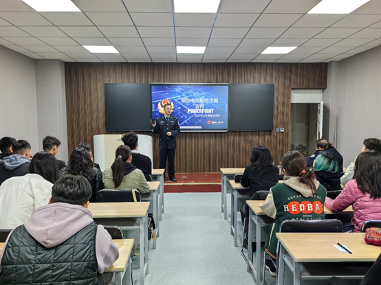2023年4月4日下午四点,国际公司邀请包头市公安局教培支队警务理论教研室艾广勇主任在腾飞楼A501开展关于预防电信网络诈骗的宣传培训。公司全体教师和职工参加了此次培训会议。