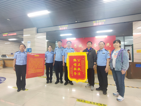 2023年5月22日上午,国际公司徐哲敏老师、王文英老师赴昆区公安分局治安大队赠送锦旗和感谢信,对他们的帮助表示感谢。
