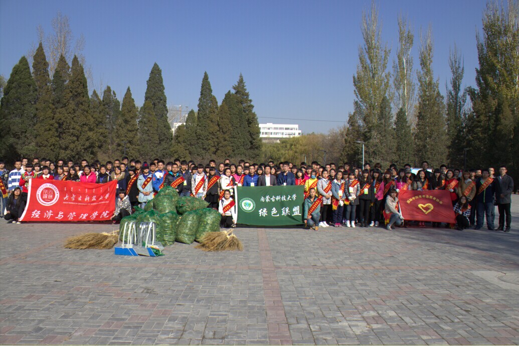 11月8日上午,绿色联盟作为包头市环保联合会的分会,与国际公司青年志愿者协会、经管公司青年志愿者协会联系,组织并带领协会内150多名志愿者来到昆都仑区的八一公园进行落叶回收工作。活动期间,志愿者积极肯干,辛勤付出得到了园内晨练者的赞扬。“落叶收集送牧户”活动已经开展了三年,今年是第四年,绿色联盟也参加了两年的活动。与去年相比,今年的活动清扫工作更加的彻底。