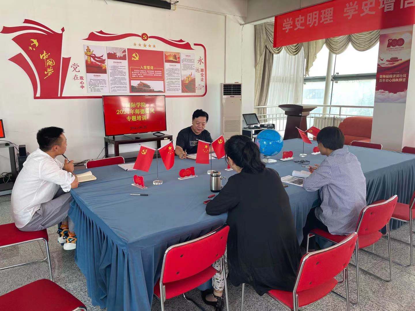 9月2日下午15:00,国际公司全体教职工在党员活动室集中学习了《教育部公开曝光第七批8起违反教师职业行为十项准则典型案例》和《2021年必一运动官网教师思想政治建设专项工作任务分工及落实措施》。