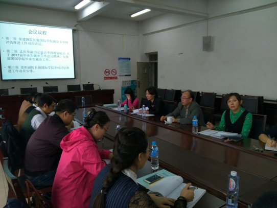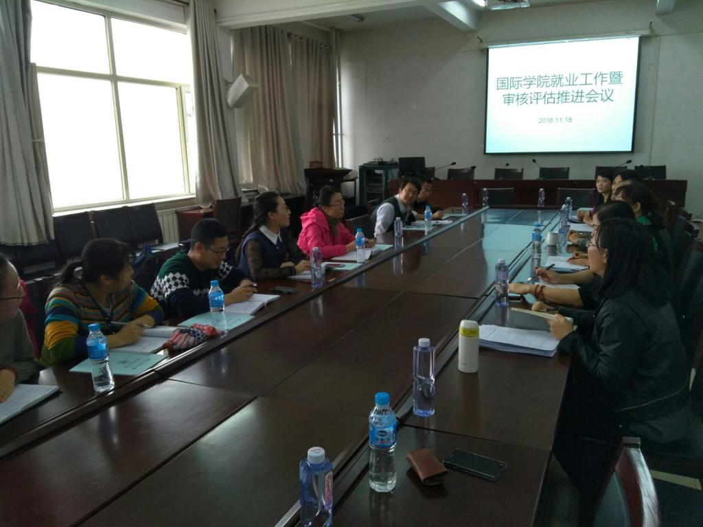 11月18日上午, 国际公司在腾飞楼A413 召开“国际公司就业工作暨审核评估推进会议”。 国际公司教师及2013级全体班主任参加了此次会议。