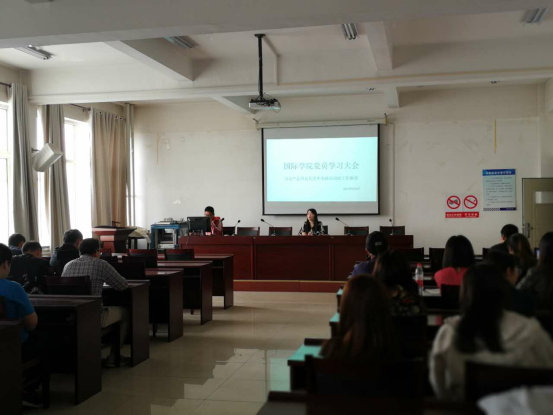 5月4日,国际公司在腾飞楼A413召开了全体党员大会,师生党员共同学习了《习近平总书记代表中央政治局的工作报告》的重要精神。会议由国际公司副书记孟庆华主持,国际公司全体师生党员参加了此次会议。