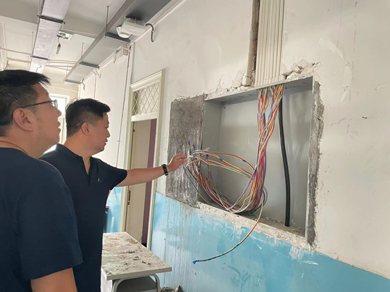 8月3日上午,副经理吴铁军与公司相关教师深入副4号楼检查宿舍改造工程,现场施工负责人对施工情况进行了简要的介绍。